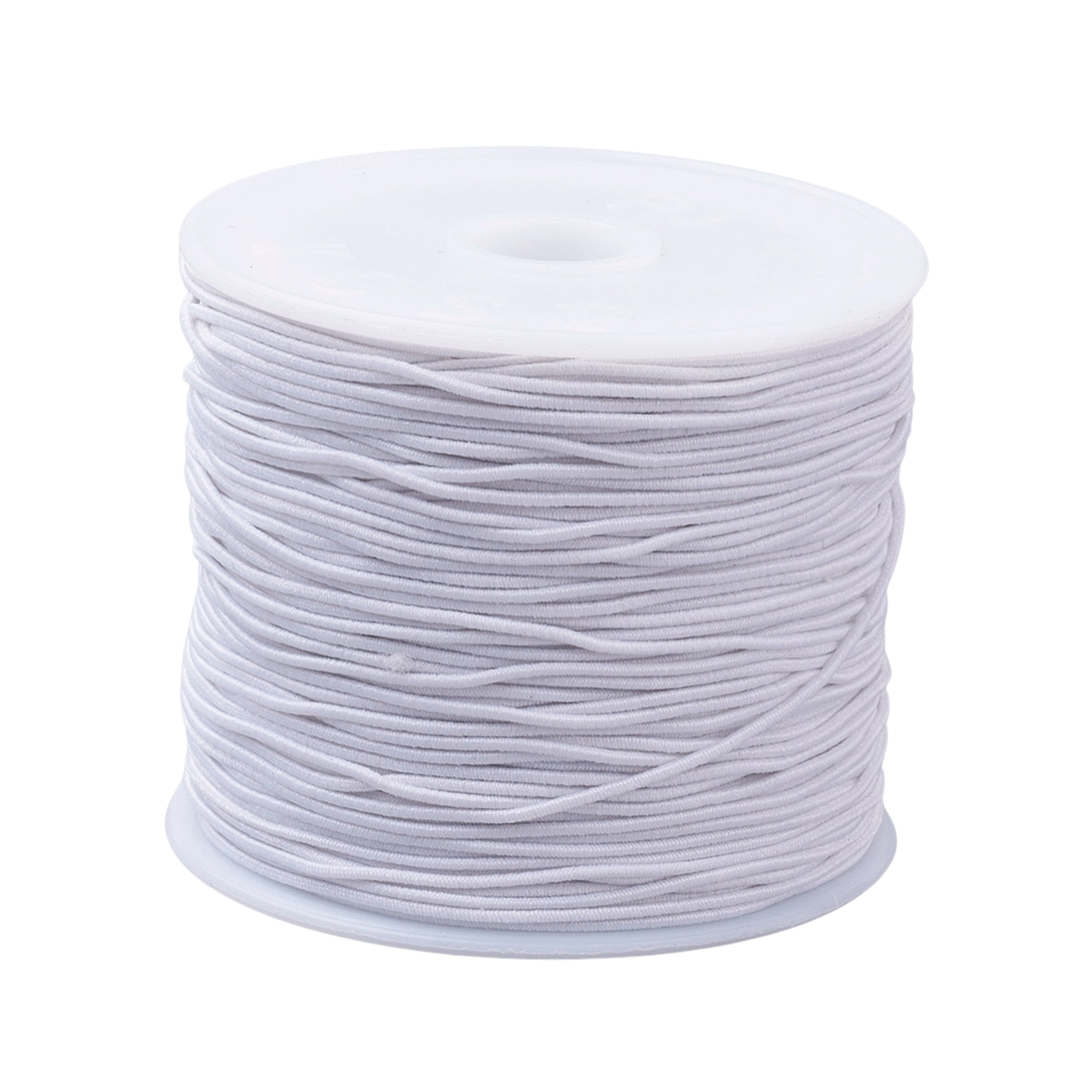 Prijs per rol van 34 tot 37 meter. Wit elastiek met een diameter van 0.6mm. Deze draad is duurzaam, flexibel en behoudt goed zijn elasticiteit.