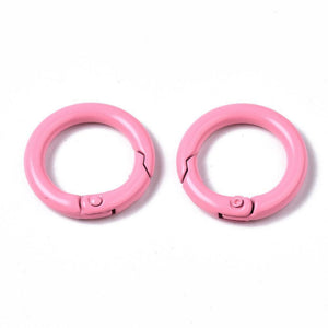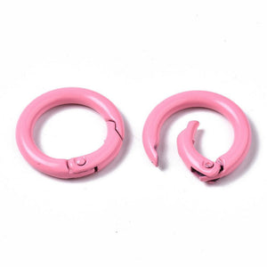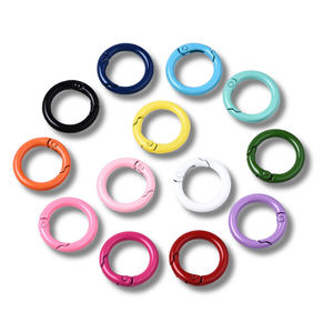 Stevige metalen O-ring met veermechanisme, ideaal als sluiting of steutelhanger / tassenhanger. De ring is voorzien van een duurzame, gespoten kleurlaag en is vrij van cadmium, nikkel en lood.