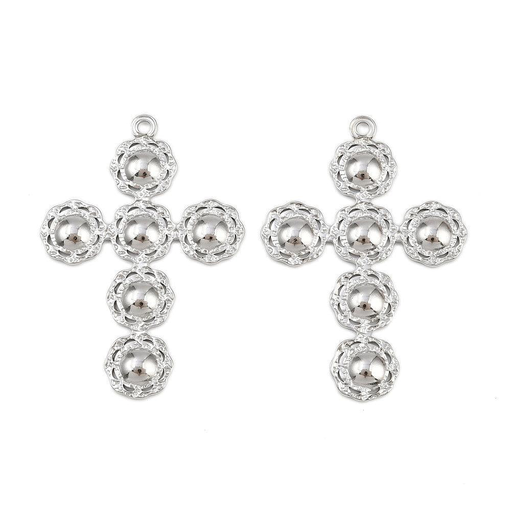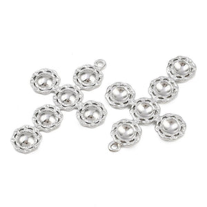 Grote RVS bedel in de vorm van een kruis, uitgevoerd in zilverkleur. Het sterke roestvrij staal zorgt voor een duurzame en tijdloze hanger die lang mooi blijft.