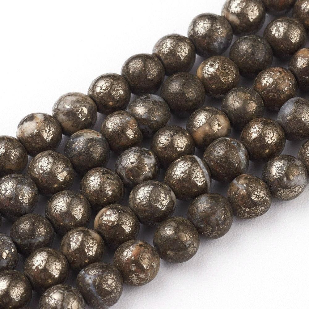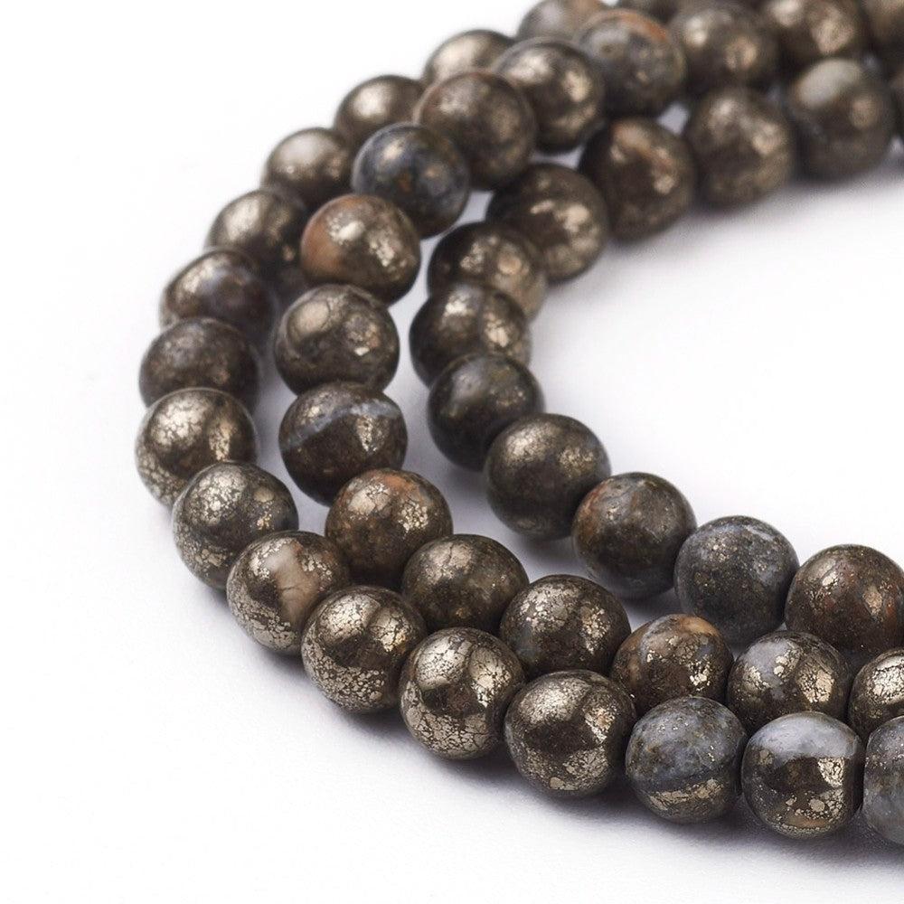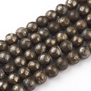 Deze ronde pyriet kralen hebben een stoere, luxe uitstraling door hun metallic glans. Pyriet wordt ook wel “fool’s gold” genoemd en is perfect als opvallend accent in armbanden, kettingen en oorbellen. Het compacte formaat van 4 mm maakt ze ideaal voor fijne sieraden met een chique twist.