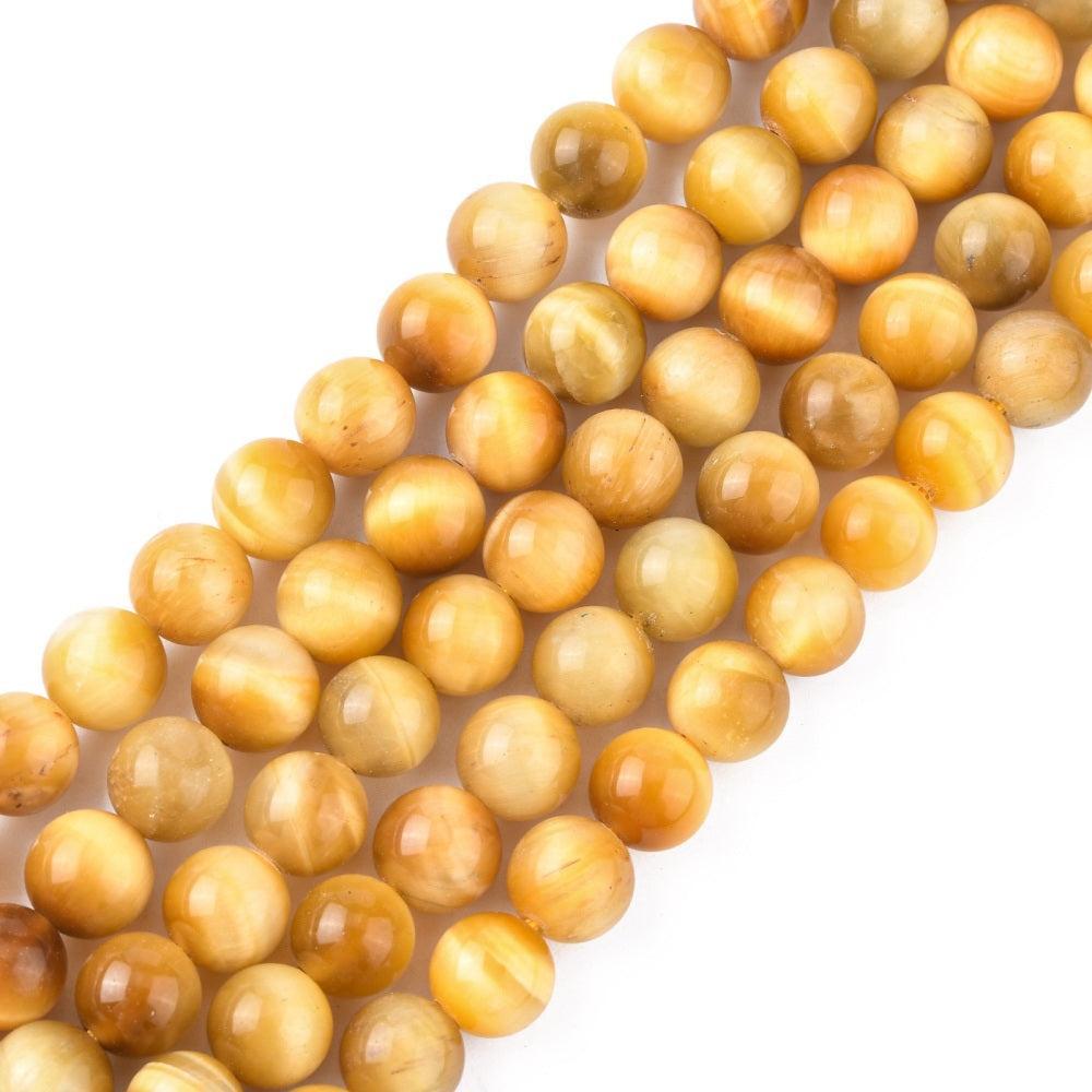 Prachtige natuurlijke Goud Tijgeroog edelsteen kraal met de kenmerkende goudbruine glans en levendige streeptekening. De ronde vorm maakt deze kraal ideaal voor allerlei sieradenprojecten.
