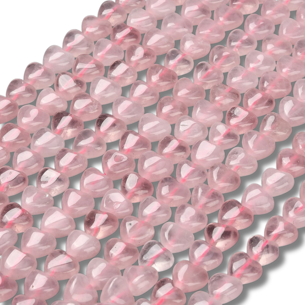 Deze natuurlijke rozenkwarts kralen in hartvorm hebben een zachte, romantische uitstraling. Door de lieve vorm zijn ze perfect voor armbanden, kettingen en oorbellen, bijvoorbeeld als middenstuk of als subtiel detail in een kralenmix.