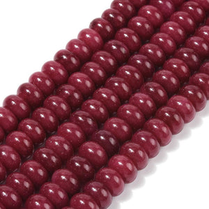 Diep donkerrode jade kraal met een elegante rondelvorm. De rijke kleur en zachte glans geven deze kraal een krachtige, stijlvolle uitstraling — perfect voor sieraden met warmte en diepte.