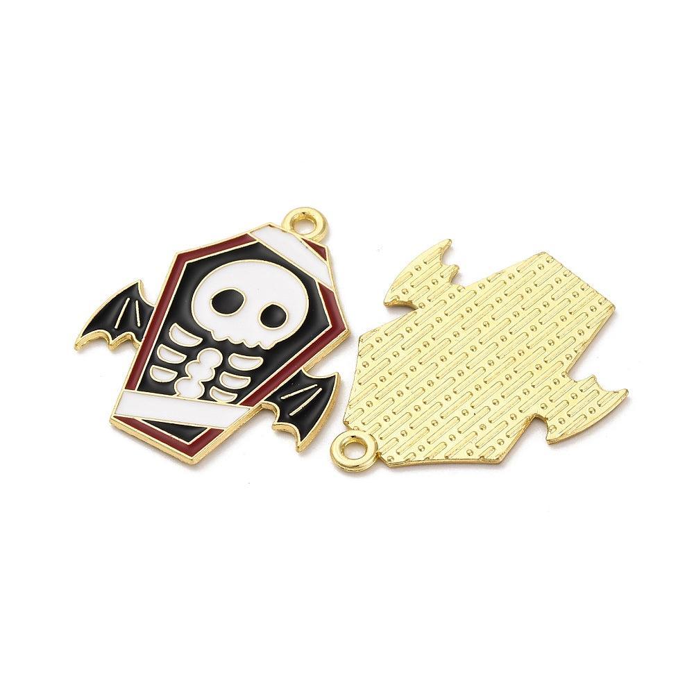 Emaille hanger in de vorm van een schedel, uitgevoerd in goudkleur met witte en zwarte details. Deze hanger maakt deel uit van de Halloween collectie en geeft je sieraden een opvallend en feestelijk accent.