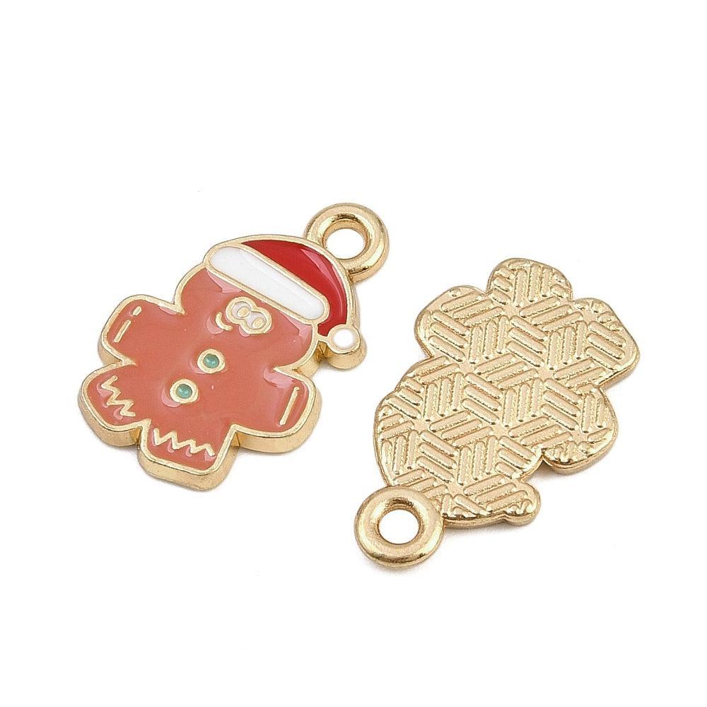 Emaille hanger in de vorm van een peperkoekmannetje, uitgevoerd in goudkleur met feestelijke details. Deze hanger maakt deel uit van de kerstcollectie en voegt direct een vrolijke en winterse uitstraling toe aan je sieraden.