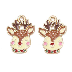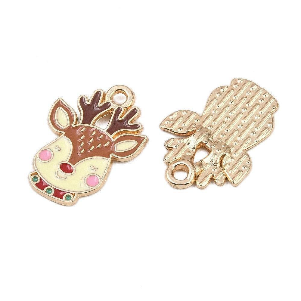 Charmante metalen hanger in de vorm van een rendier, met glanzende lichtgouden accenten en feestelijke emaille details. Ideaal voor kerstcreaties of winterse sieraden.