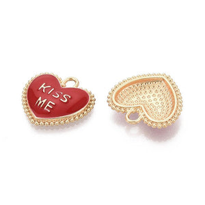 Romantisch emaille bedeltje in de vorm van een hart met de tekst Kiss Me. De goudkleurige afwerking met rode emaille maakt dit hangertje perfect voor Valentine’s Day sieraden en als opvallend accent in armbanden, kettingen of oorbellen.