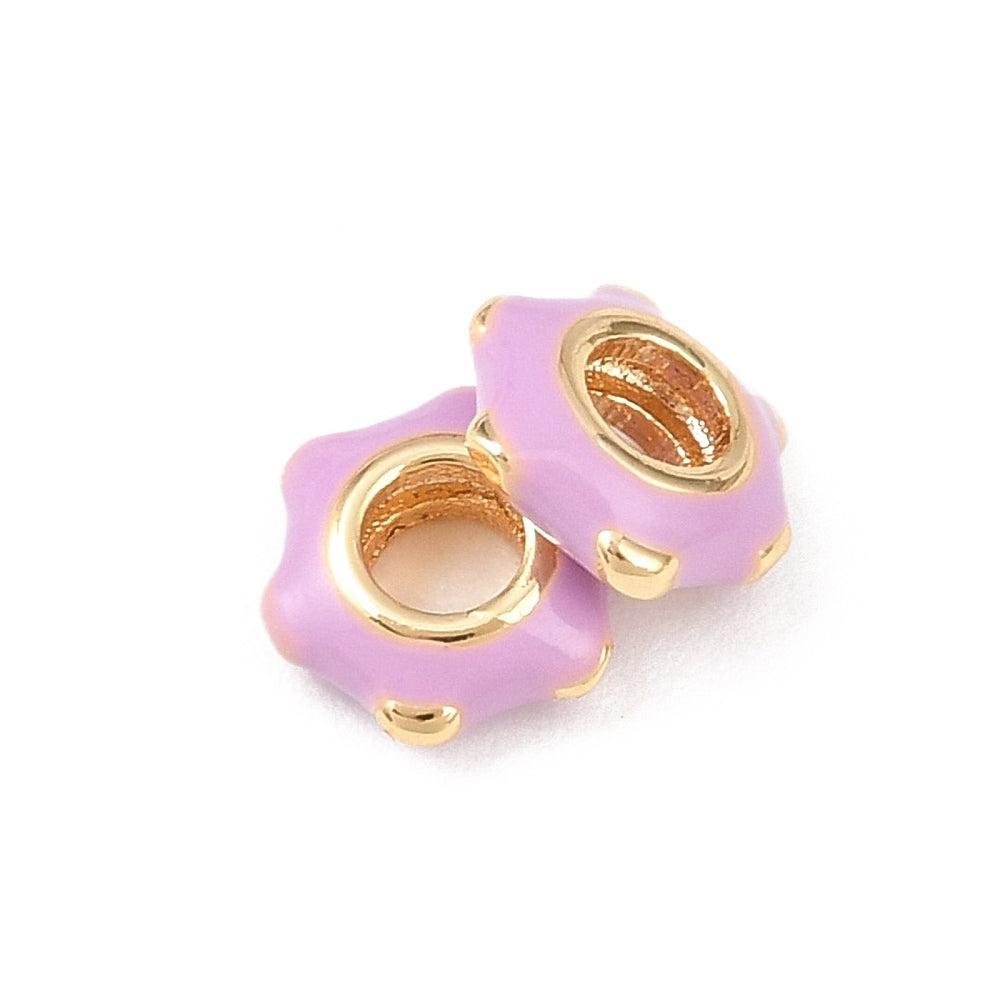 Kleine stervormige messing kraal met een paarse emaille afwerking en een luxe 18K gold plated coating. Een vrolijk en strak vormgegeven accentkraal die perfect is voor kleurrijke en moderne sieraden.