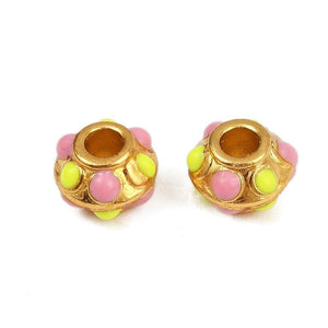 Kraal Rond Emaille Goud / Geel / Roze 10mm - per stuk