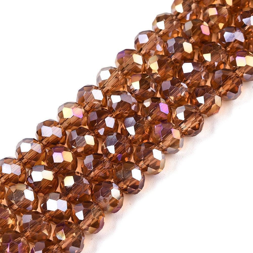 Deze facetgeslepen rondel glaskralen zijn afgewerkt met een AB color plating, wat zorgt voor een subtiele iriserende glans. De kleur peru geeft de kralen een warme, zachte uitstraling met een luxe effect. Door de gelijkmatige vorm zijn ze prettig te verwerken in uiteenlopende sieradenontwerpen.