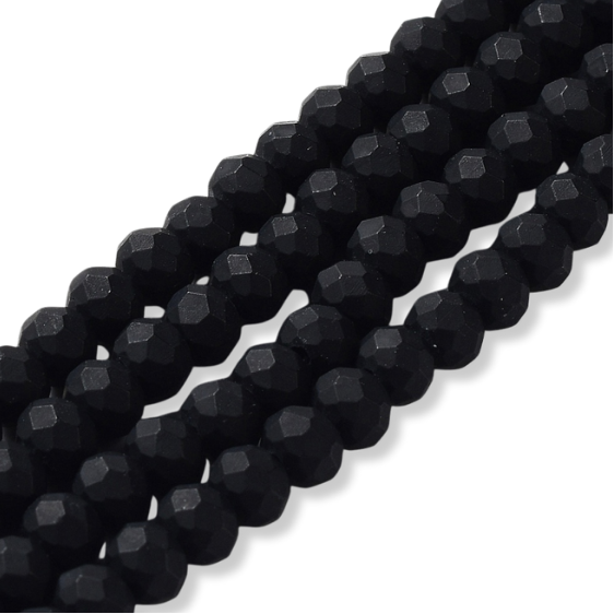 Deze glaskralen hebben een matte frosted afwerking die zorgt voor een moderne en subtiele uitstraling. De ronde facetgeslepen vorm in zwart maakt deze kralen veelzijdig en uitstekend geschikt voor zowel minimalistische als stoere sieradenontwerpen.