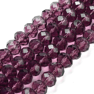 Handgemaakte facetgeslepen glaskralen in paars, 8x6 mm