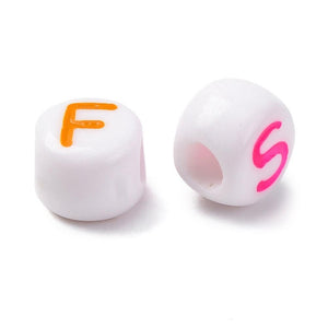 Met de acryl letter kralen maak je zelf eenvoudig leuke tekst armbandjes. Bijvoorbeeld met naam, of quote. Je kan de letterkralen tussen allerlei verschillende kralen rijgen. Maar je kan de letters ook op nylon draad of elastiek rijgen.