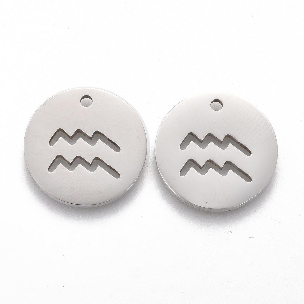 Deze minimalistische ronde hanger met het sterrenbeeld Waterman (aquarius) is gemaakt van roestvrij staal en heeft een strakke RVS-kleur. Een tijdloos detail voor persoonlijke sieraden zoals kettingen, armbanden of bedelcreaties met een betekenisvolle touch.