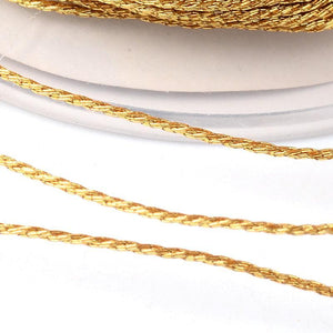 Rond metallic koord kan gebruikt worden om te rijgen, macrameeën of knopen. Het 0,4mm koord past door hele kleine kraaltjes.