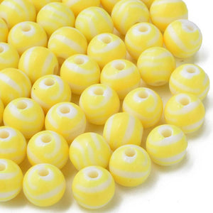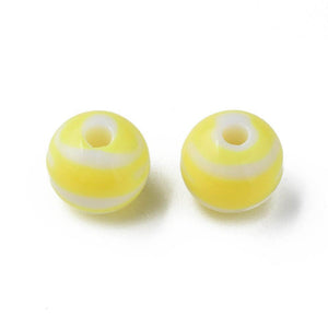 Speelse acryl kraal met een gestreept patroon, uitgevoerd in geel. Deze frisse kraal geeft elk ontwerp een vrolijke en opvallende uitstraling.