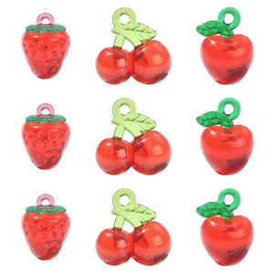 Deze transparante acryl hangers in fruitvorm geven je sieraden een speelse en frisse uitstraling. De set bestaat uit drie verschillende vormen: een kers, appel en aardbei. De helderrode kleur in combinatie met het transparante effect maakt deze bedels perfect voor vrolijke sieraden, kindersieraden en zomeraccessoires.