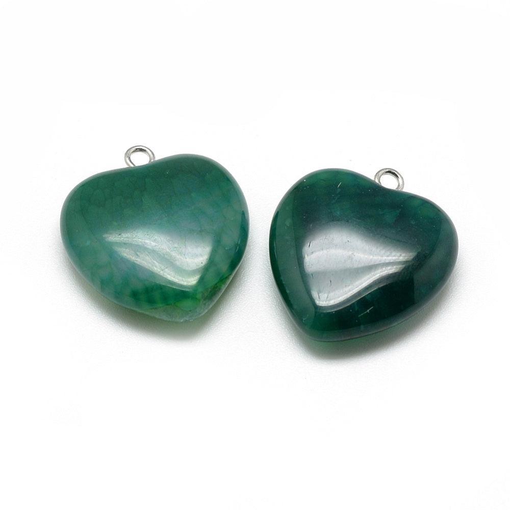 Deze prachtige hanger is gemaakt van natuurlijke Braziliaanse agaat en is door middel van verven en verhitting op kleur gebracht in een frisse groene tint. De stevige ijzeren afwerking in platinakleur geeft het hart een stoere en luxe uitstraling. Elke hanger is uniek door de natuurlijke tekening van de steen.