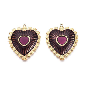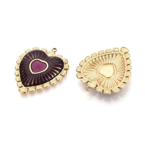 Deze stijlvolle hart hanger is gemaakt van hoogwaardig roestvrij staal en afgewerkt met een diepe paarse emaille laag. De ion plating in combinatie met een echte 18K goud vergulde afwerking zorgt voor een luxe, duurzame uitstraling. Door het royale formaat is deze hanger een echte blikvanger in sieradenontwerpen.