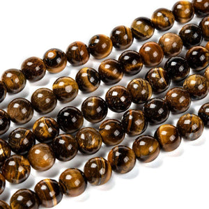 Prachtige natuurlijke Tijgeroog edelsteen kraal van Grade A/B kwaliteit. De ronde vorm en warme goudbruine tinten met glanzende lichtreflectie maken deze kraal perfect voor elegante en krachtige sieraden.