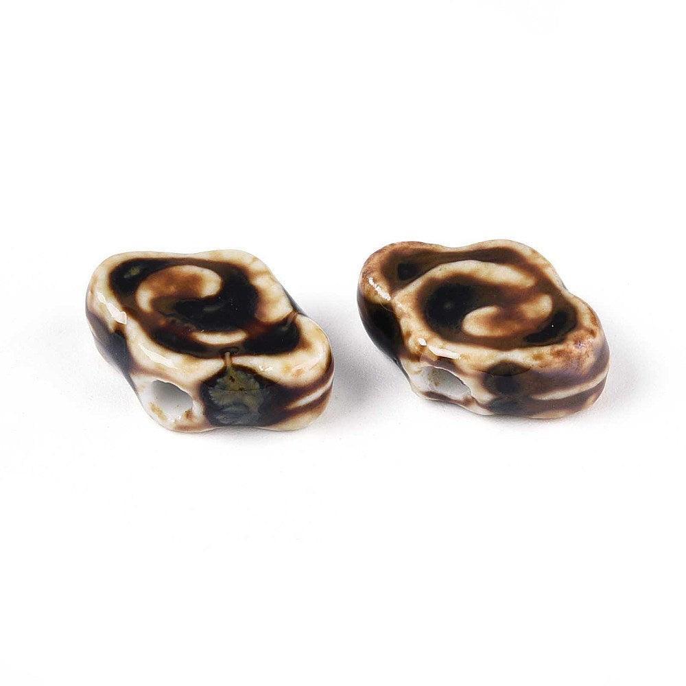 Charmante handgemaakte porseleinen kraal , uitgevoerd in een bruine tint. Dankzij de geglazuurde afwerking heeft elke kraal een subtiele glans en is hij uniek in uitstraling.