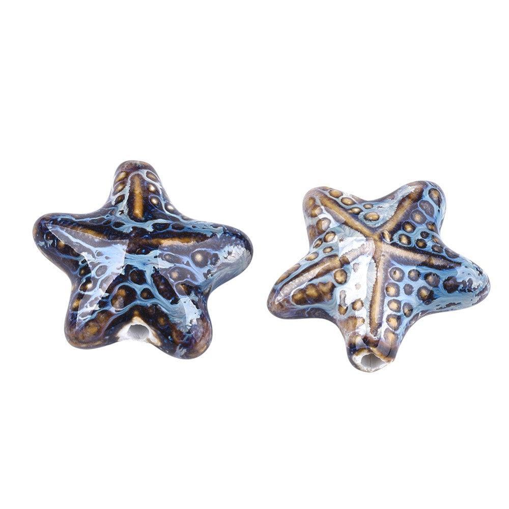 Kraal porselein zeester groot blauw 35mm - per stuk