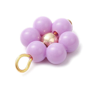 Prijs per 5 stuks. Acryl bedel bloem van 22,5x15,5mm groot. Er zit een rijggat in van 2,5mm,
