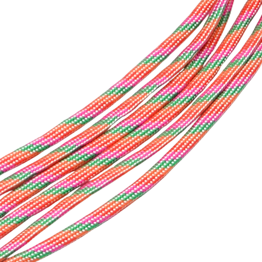 Deze parakoorden zijn sterk, soepel en ideaal voor het maken van sieraden en creatieve projecten. Dankzij de mix van roze, oranje en groene tinten geef je je ontwerpen meteen een vrolijke en speelse uitstraling. Het koord is stevig, duurzaam en prettig om mee te werken.