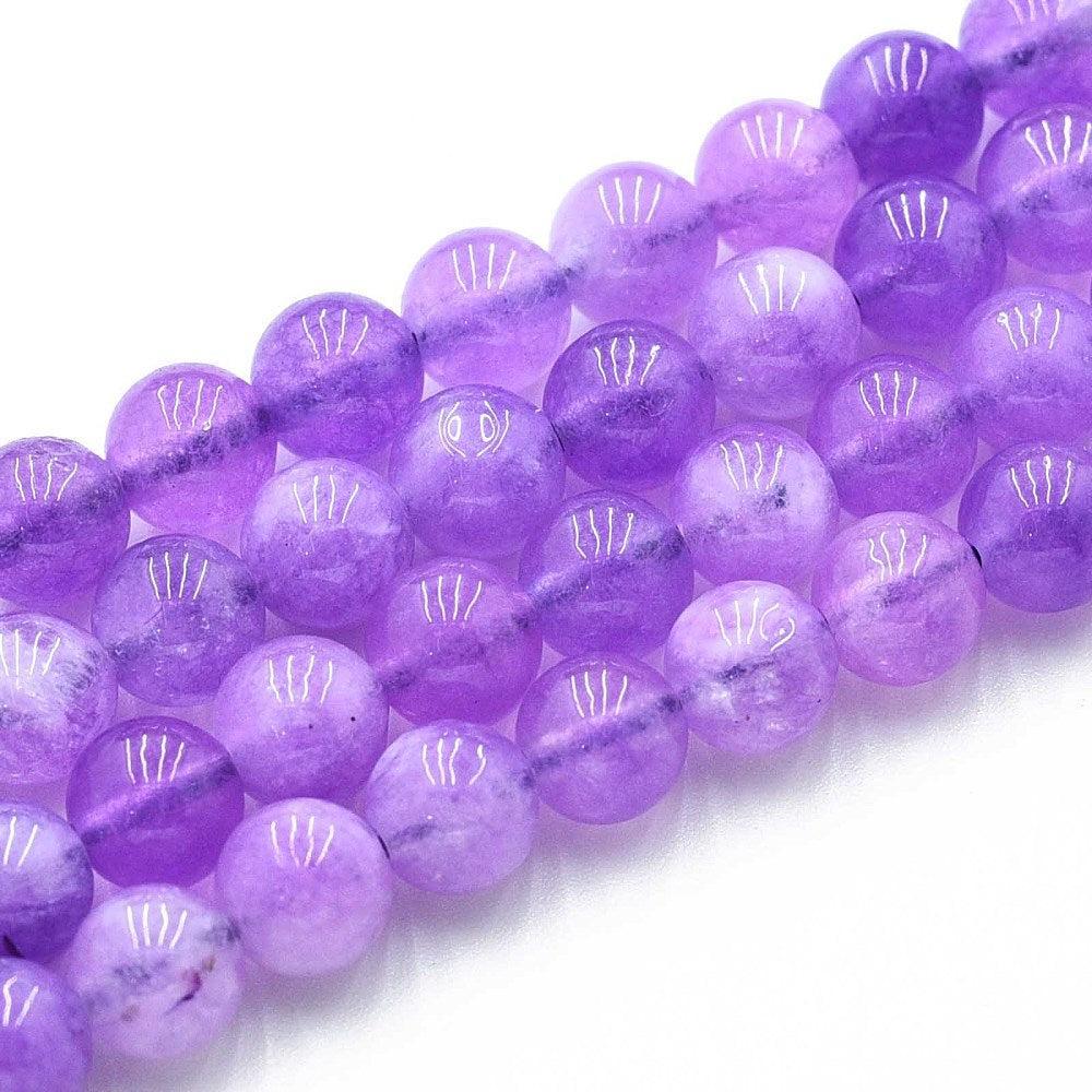 Natuurlijke kwarts kralen in ronde vorm, geverfd in een elegante paarse tint met de uitstraling van amethist. De diepe kleur en subtiele glans geven je sieraden een luxe en tijdloze uitstraling.
