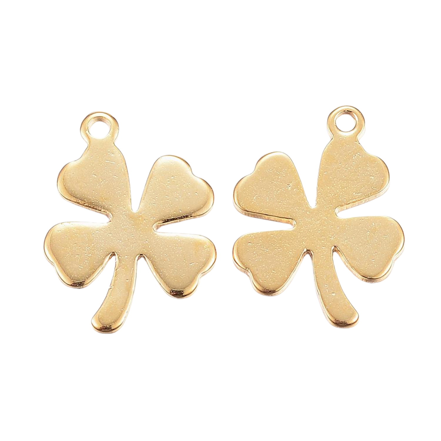 Bedel klavertje 24K RVS goud 13mm - per stuk