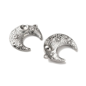 Mooie RVS bedel in de vorm van een maan, uitgevoerd in zilverkleur. De hanger heeft zettingen die geschikt zijn voor strass-steentjes van 5 mm en 1,5 mm, waardoor je hem zelf kunt personaliseren.