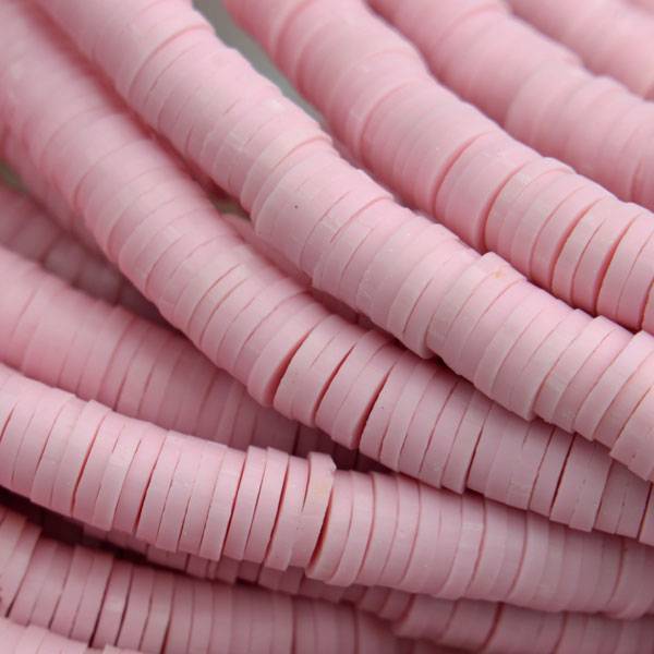 Prijs per ongeveer 200 stuks. De polymeer disc kralen, ook wel katsuki kralen genoemd zijn 6mm hoog en ongeveer 1mm dik. Polymeer disc kralen in de kleur Soft pink.