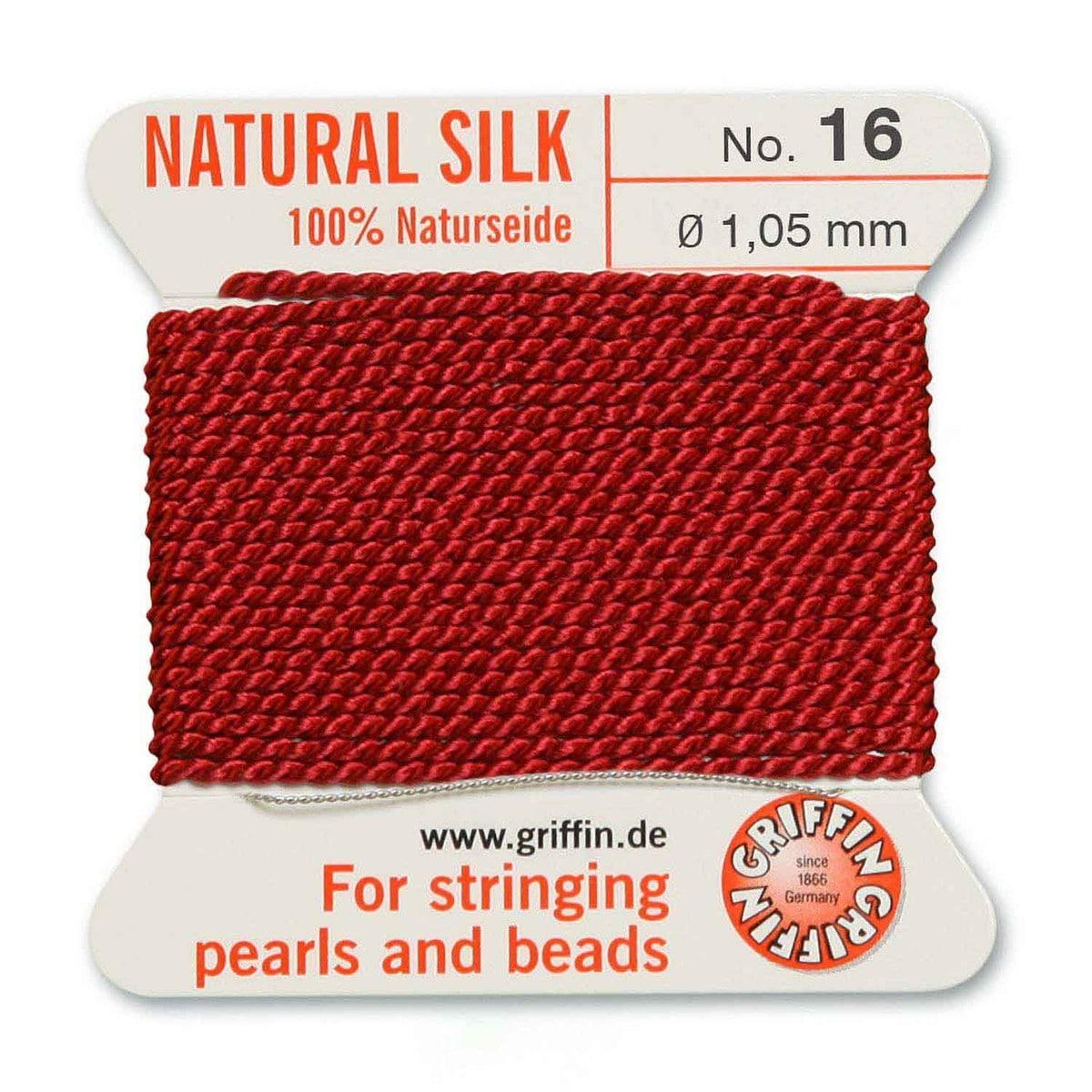 Het zijden koord van Griffin is heel stevig en zeer geschikt om bv parels mee te knopen. Het 1,05mm koord past door de miyuki 6/0 kralen.