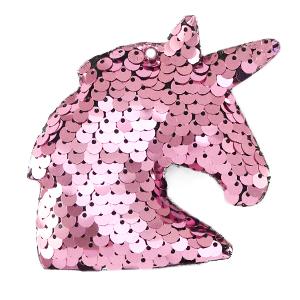 De unicorn pailletten hanger is ongeveer 8x7cm groot. De hangers wegen bijna niets en kunnen met een ringetje of lintje overaal aan de bevestigd worden. In de boverkant van de hanger is al een gaatje gemaakt.