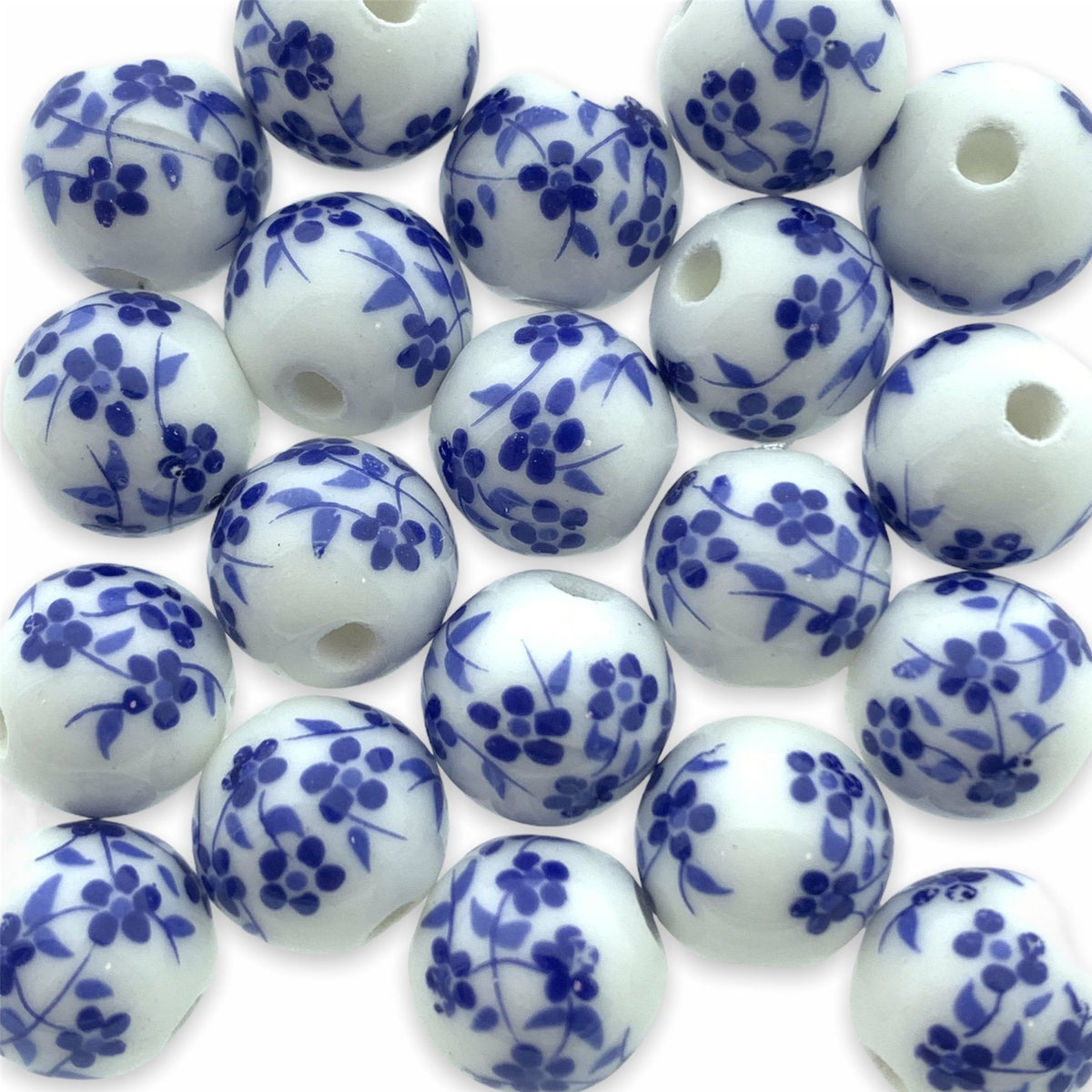 Prijs per stuk. Kralen van porselein keramiek 10mm rond met een groot gat van ongeveer 2mm. De kralen hebben een mooie opdruk en dit maakt het werken met deze kralen ook leuk en je sieraden bijzonder. Met de ronde kralen maak je zelf je mooiste armbanden, kettingen en hangers.