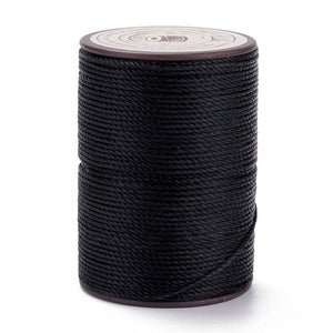 Prijs per klosje. Dun koord van 0,8mm met een wax laagje. Sterker dan het nylon koord. Ideaal om mee te macrameeën, knopen, haken en rijgen. Op een klosje zit ongeveer 50 meter draad.