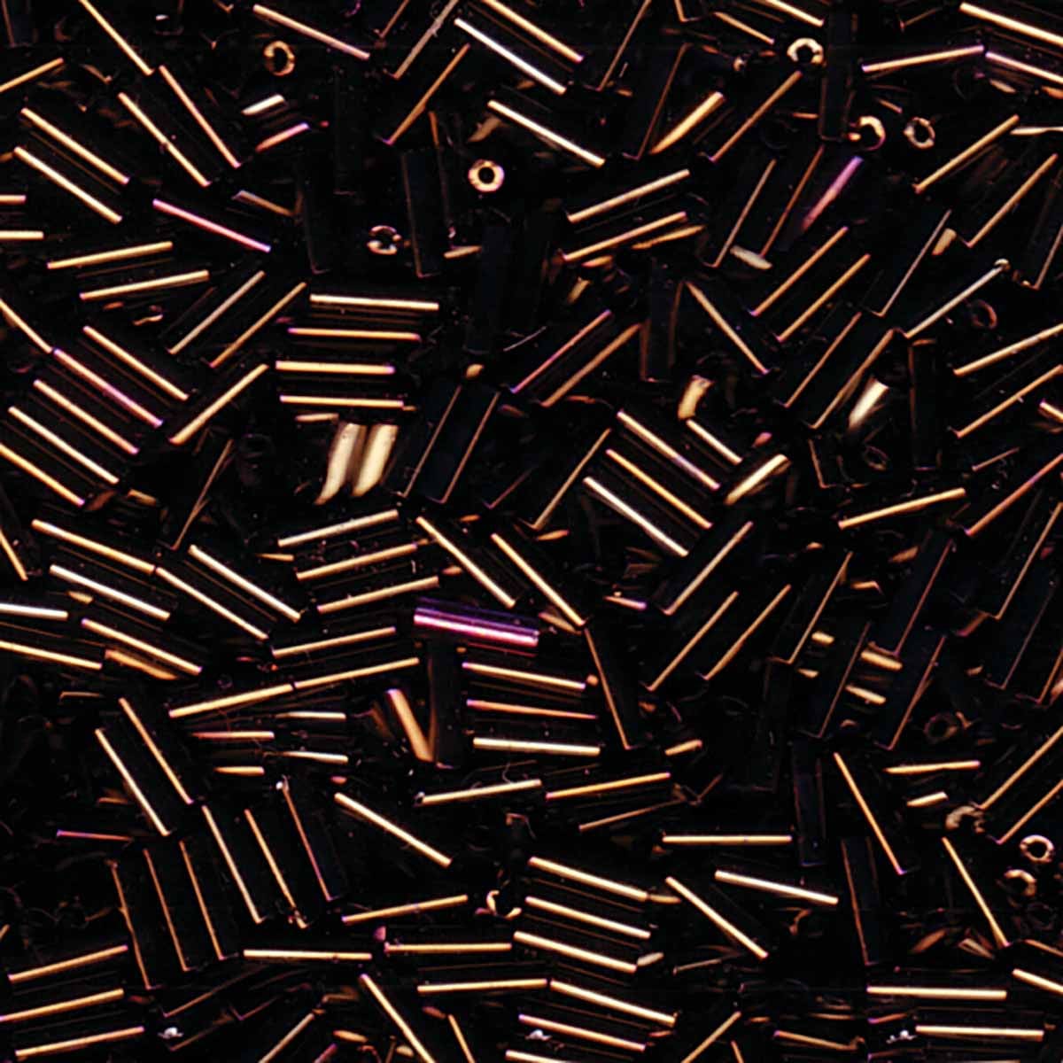 Prijs per ±180 kralen. Bugles zijn langwerpige buisjes met een slanke cilindervorm. Bij een lengte van 6 mm, zijn ze slechts 1,7 mm dik en hebben ze een rijggat van 0,8 mm. Met bugles kun je veel kanten op. Je kunt ze achter elkaar rijgen voor een ketting, vooral mooi met meerdere slierten naast elkaar. De bugles blijven mooi op elkaar staan als je er een 15/0 of 11/0 rocaille steeds tussen plaatst, maar dat hoeft niet per se.