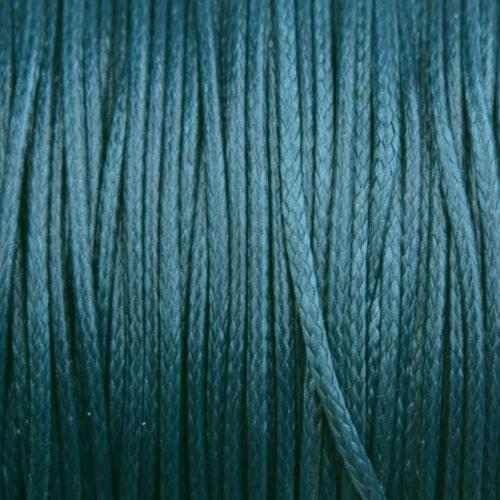 Prijs per 5 meter. Rond polyester waxkoord met een dikte van ongeveer 1mm. Waxkoord shiny in de kleur petroleum blue.