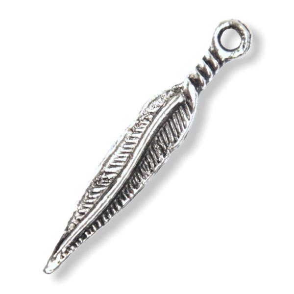 Prijs per 10 stuks. Bedel veertje metaal zilver.