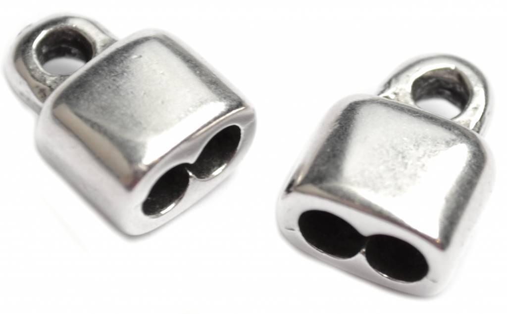 Prijs per stuk. Eindkap met 2 gaten van 4mm, bijvoorbeeld voor 2 rond gevlochten leertjes naast elkaar, Europees Design Quality metaal.