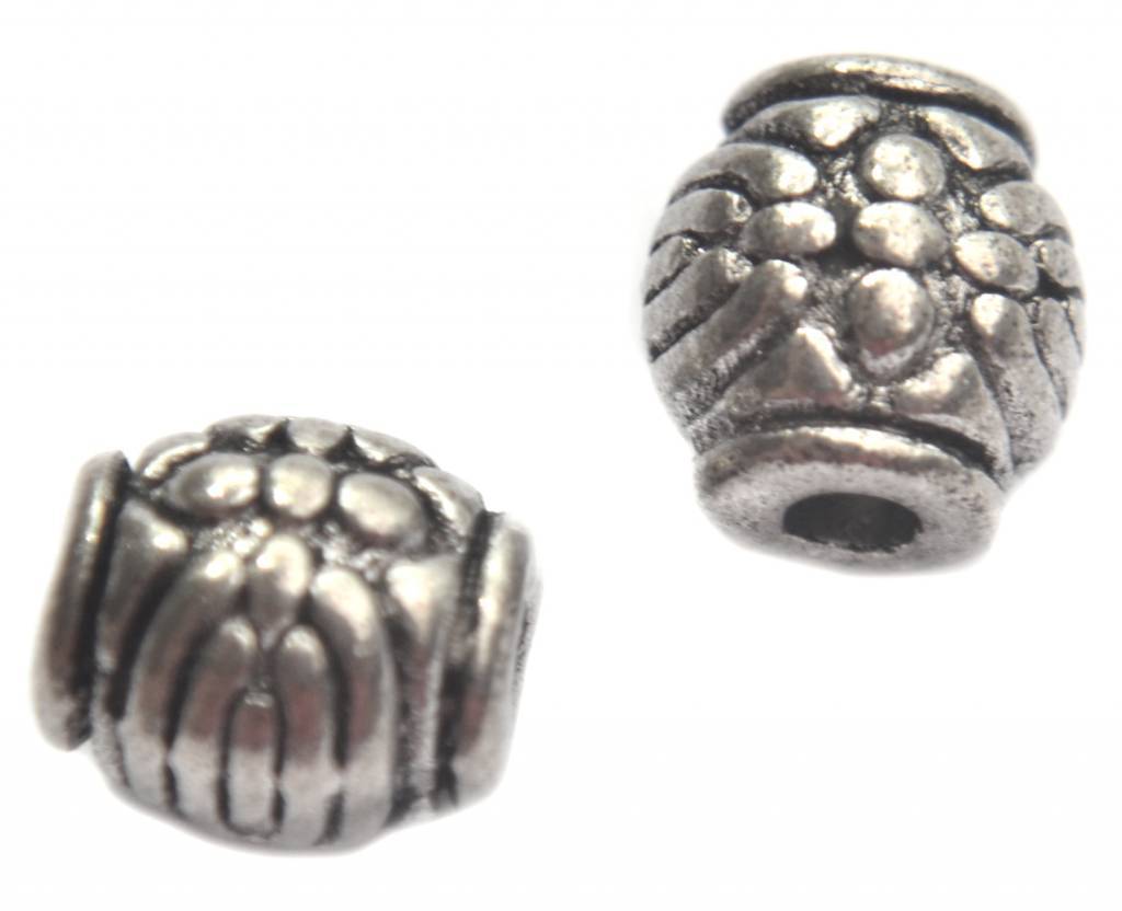 Prijs per 8 stuks. Kraal met bloemetje metaal zilver.