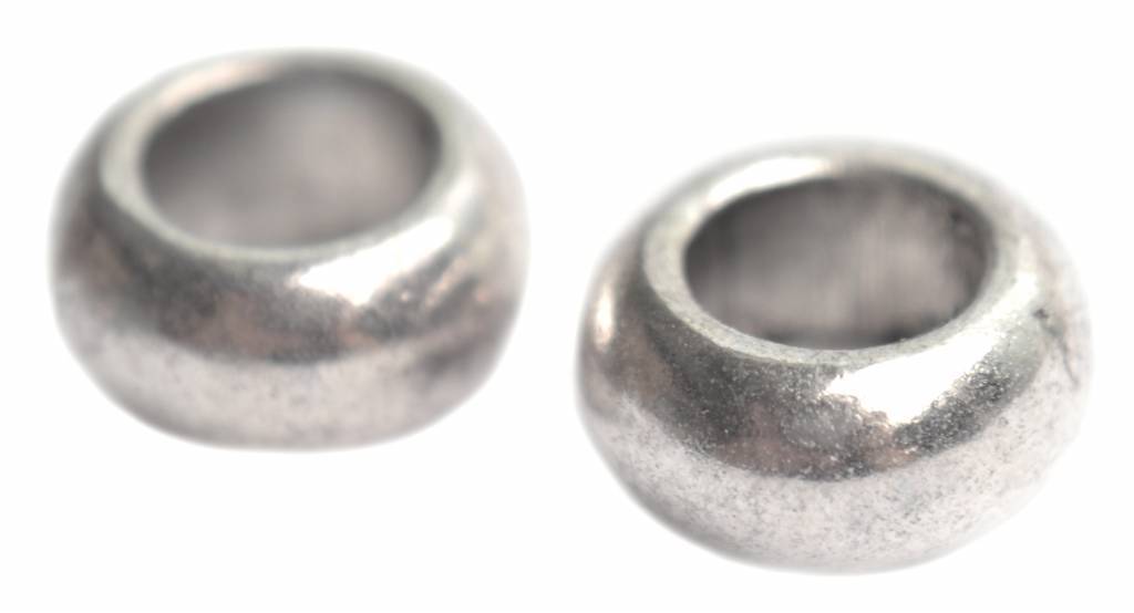 Prijs per 4 stuks. Kraal met groot gat van 7mm in metaal zilver.