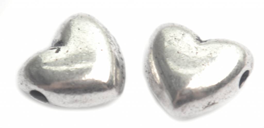 Prijs per 3 stuks. Kraal hart met een dwars gat in metaal zilver.
